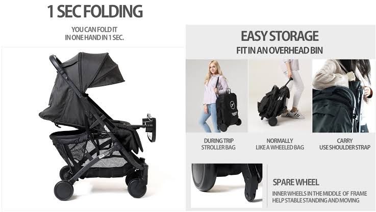 – keistimewaan stroller ini, bawanya bisa ditarik kaya koper 4 roda, jd ngga berat dan beban stroller ngga di tangan kita